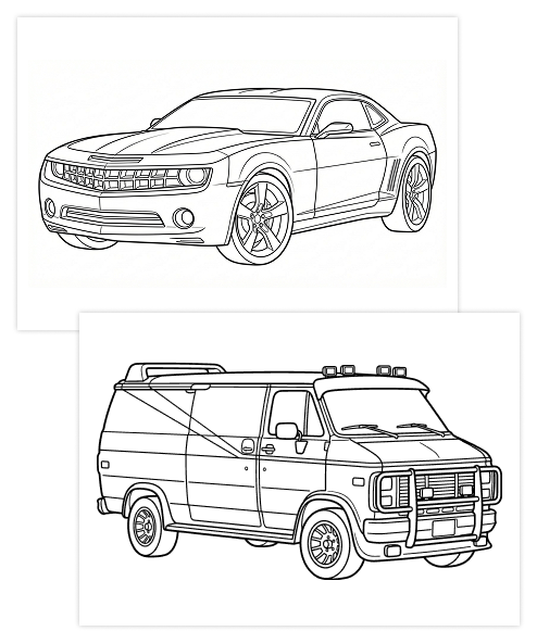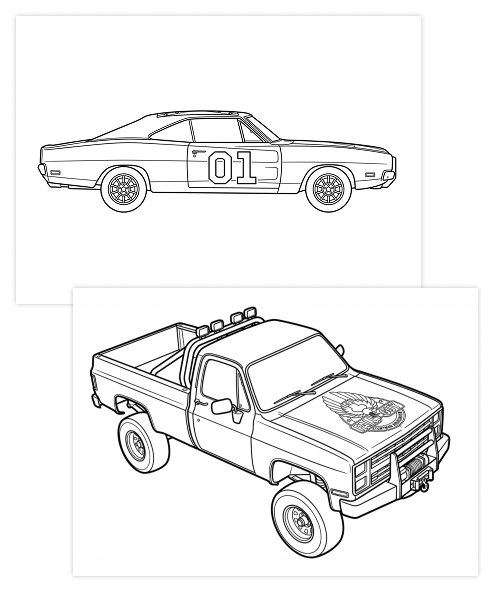 From muscle cars and stunt vehicles to unmistakable silhouettes, these pages are designed to spark instant recognition and creative nostalgia.