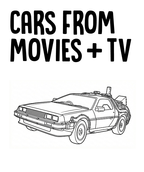‘Cars from Movies and TV’ is a celebration of the most unforgettable vehicles ever to appear on screen. From time-travelling science fiction to high-octane action, classic comedy, and iconic television moments, this premium digital colouring book captures the spirit of cars that became legends.